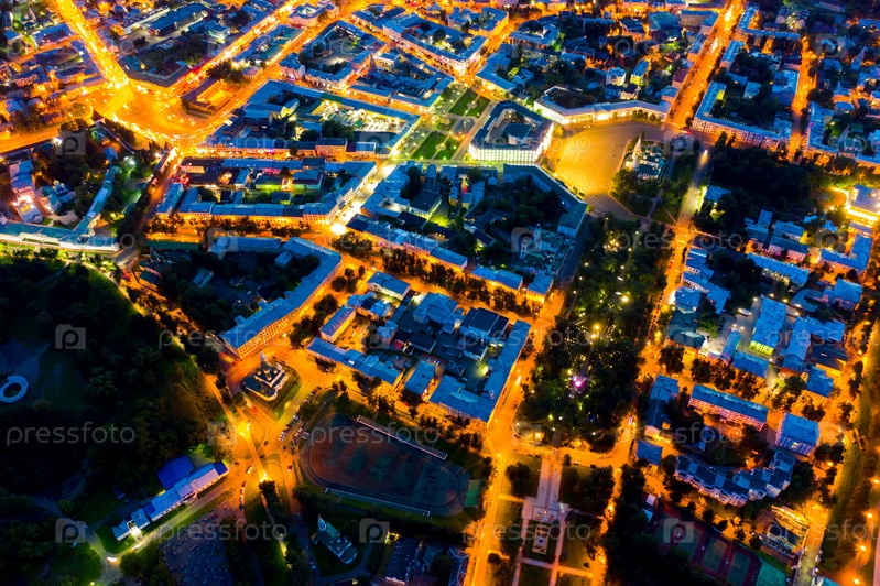 Ярославль, Россия. Исторический центр города, Советская площадь. Вид с воздуха ночью
