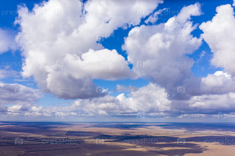 Россия. Сильные дождевые облака над осенними полями. Степь. С высоты птичьего полета