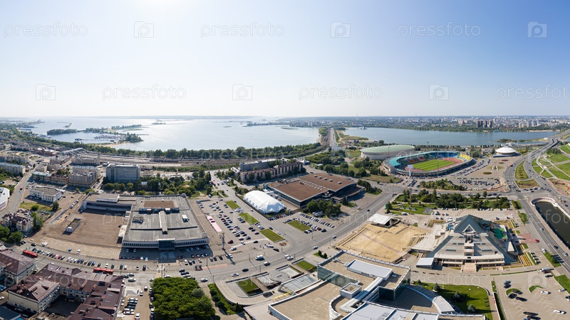 Казань, Россия. Панорама центральной части города, вид на слияние рек Волги и Казанки. С высоты птичьего полета