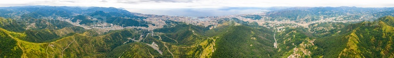 Генуя, Италия. Круговая панорама Генуи с воздуха. Пасмурная погода