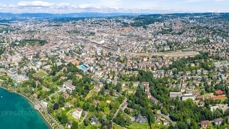 Лозанна, Швейцария. Панорама центральной части города. С высоты птичьего полета