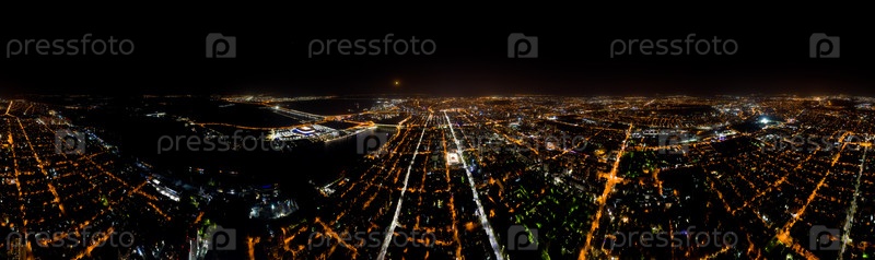 Ростов-на-Дону, Россия. Панорама центральной части Ростова-на-Дону. Ночной вид с воздуха. Панорама 360