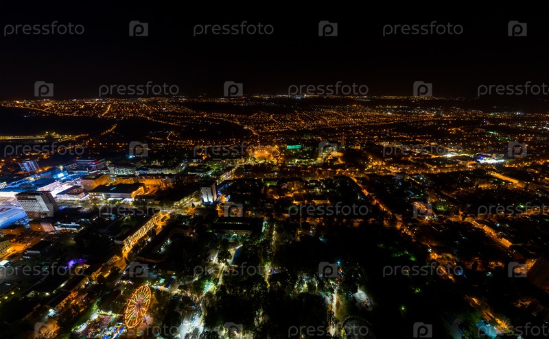 Ставрополь, Россия. Вид с воздуха на центр города ночью. Огни ночного города