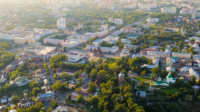 Россия, Владимир. Центр города с воздуха. Золотые ворота (Владимир), вид с воздуха