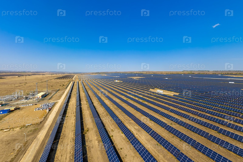 Ставрополь, Россия. Деревня Старомарьевка. Крупнейшая солнечная электростанция в России. С высоты птичьего полета