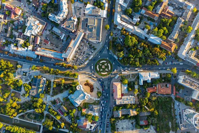 Симферополь, Крым. Советская площадь. Центр города. С высоты птичьего полета. Время заката. Лето