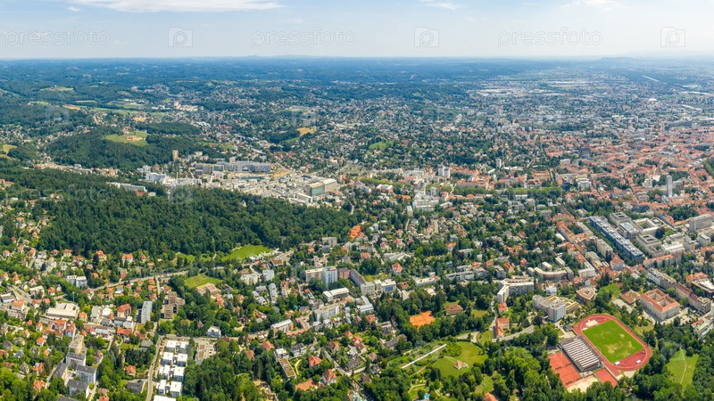 Грац, Австрия. Панорама города. Вид с воздуха на город и его окрестности