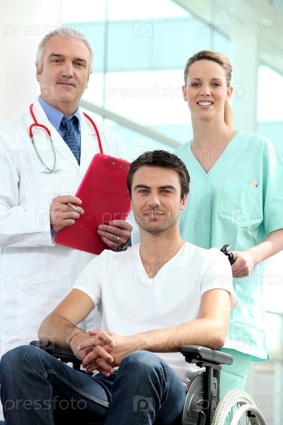 Доктор и медсестра с пациентом в коляске