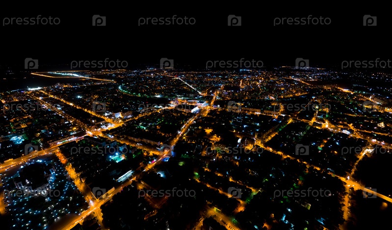 Астрахань, Россия. Аэрофотоснимок ночного города. уличные фонари