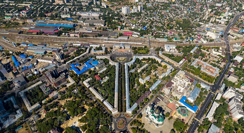 Воронеж, Россия. Главный железнодорожный вокзал. Лето. С высоты птичьего полета