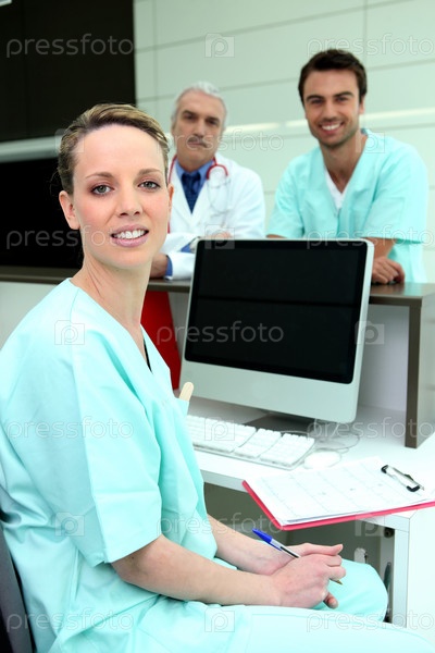 Медицинские коллеги с компьютером