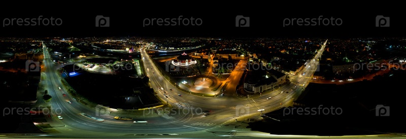 Тула, Россия. Ночная панорама Вид с воздуха. Огни большого города. Панорама 360