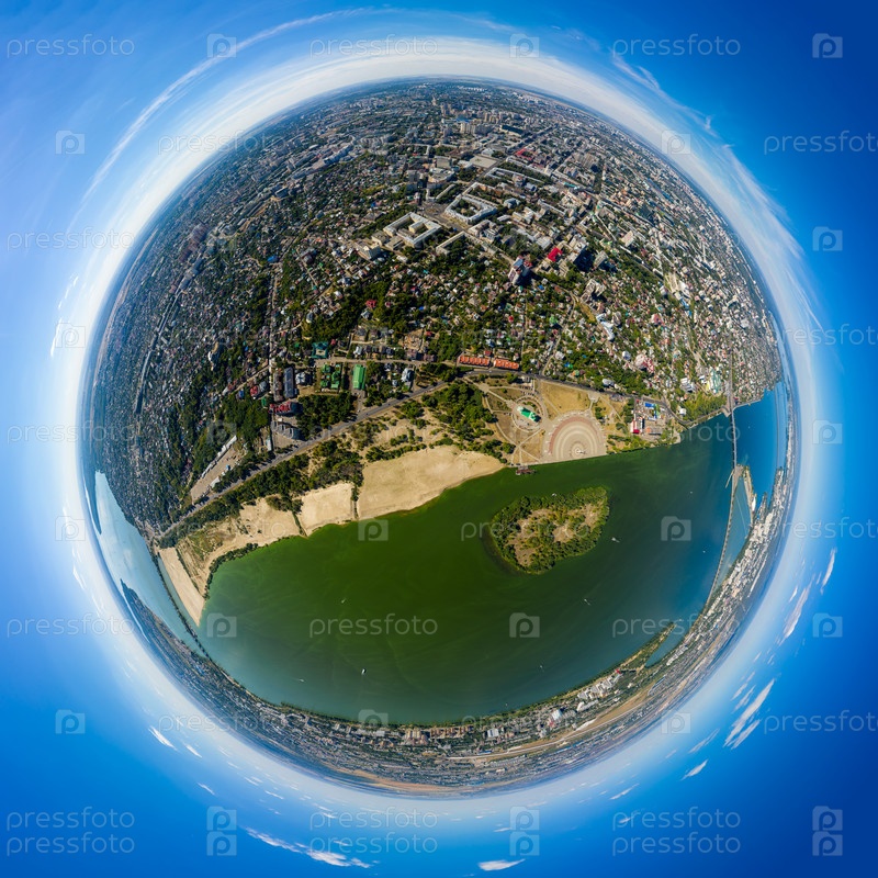 Воронеж, Россия. Панорама города с воздуха. Лето. С высоты птичьего полета. 360-градусный панорамный астероид
