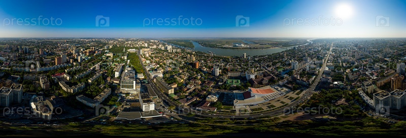 Ростов-на-Дону, Россия. Летняя панорама города с воздуха, вид с воздуха. Панорама 360