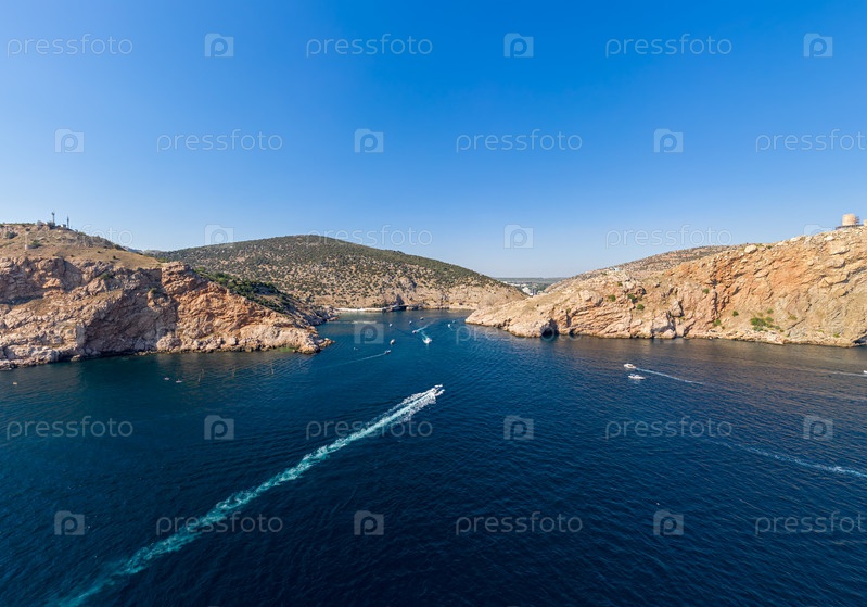 Севастополь, Крым. Вход в Балаклавскую бухту с яхт и прогулочных катеров. С высоты птичьего полета