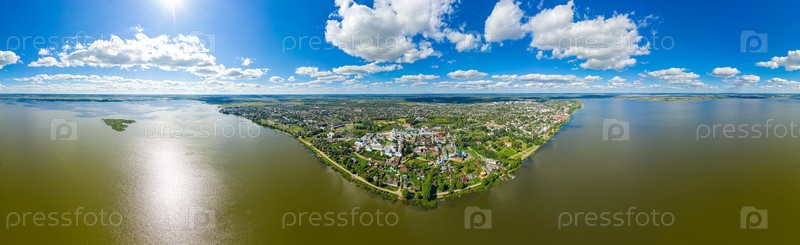 Ростов, Россия. Ростовский кремль. Озеро Неро. С высоты птичьего полета. Панорама 360