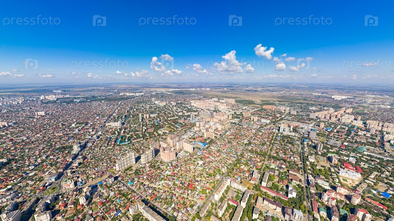 Краснодар, Россия. Общая панорама города Краснодара летом. С высоты птичьего полета