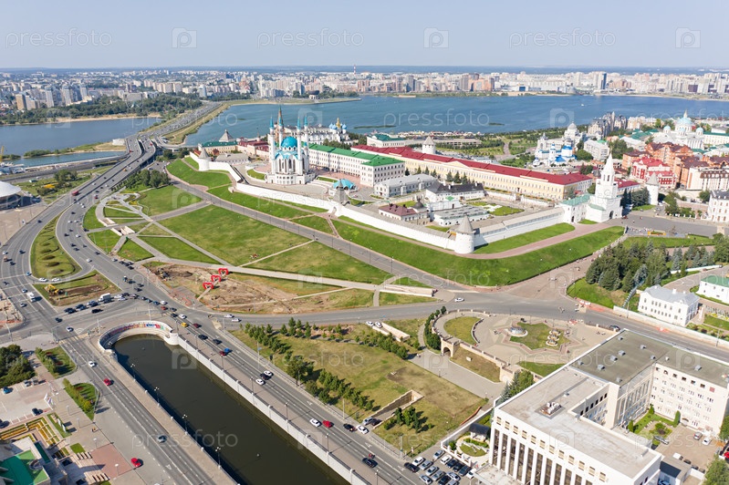 Казань, Россия. Главной достопримечательностью города является Казанский Кремль. С высоты птичьего полета