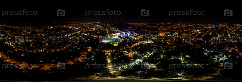 Ставрополь, Россия. Вид с воздуха на центр города ночью. Панорама 360. Огни ночного города