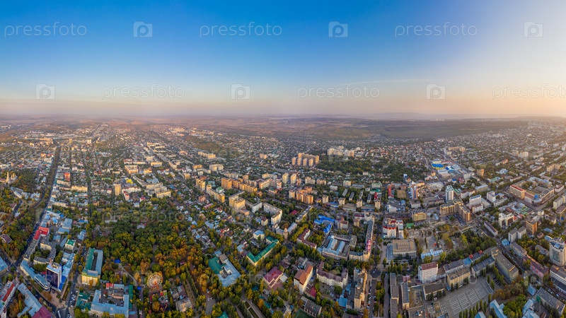 Ставрополь, Россия. Вид с воздуха на центр города во время заката. Падать