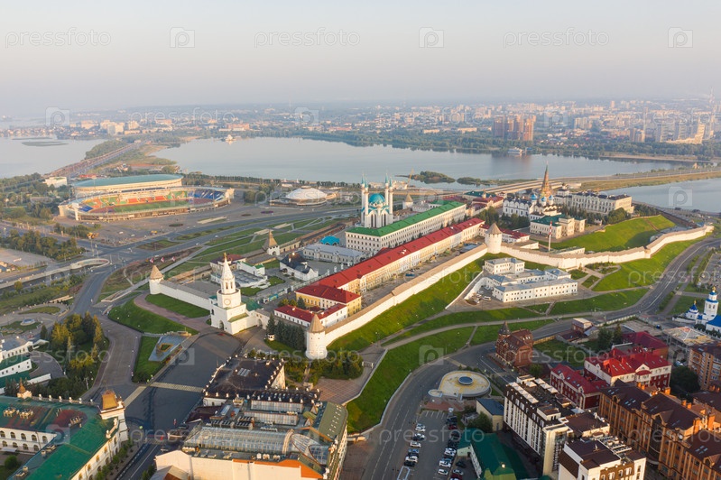 Вид с воздуха на Казанский Кремль во время восхода солнца