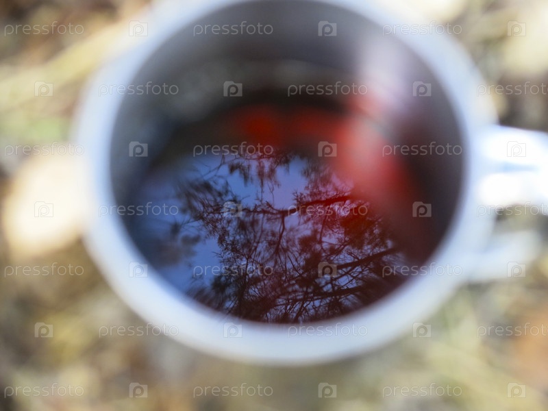 Крепкий чай в походной железной кружке на природе