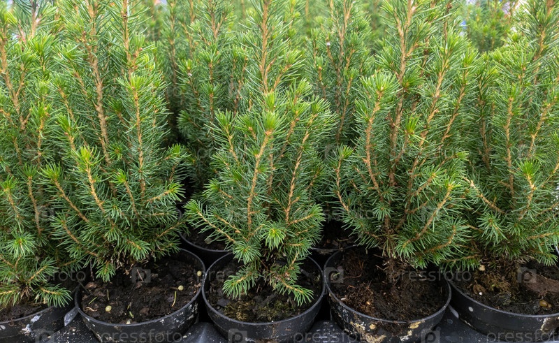 Много мелких саженцев зеленой ели съедено в отдельных цветочных горшках. Питомник для выращивания хвойных деревьев