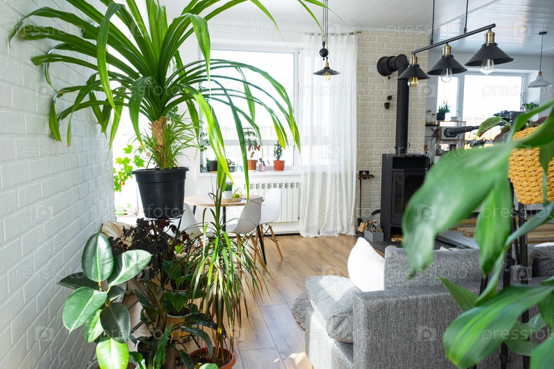 Стеллаж с группой комнатных растений в интерьере. Комнатное растение Выращивание и уход за комнатным растением, зеленый дом