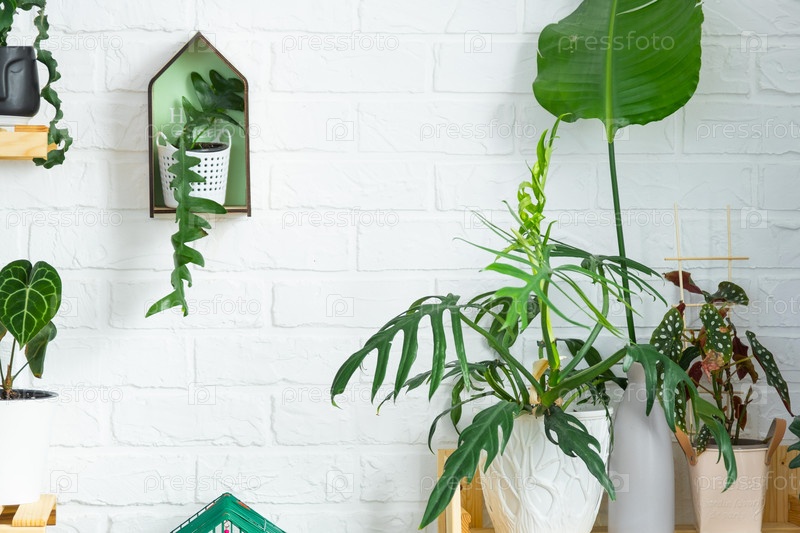 Стеллаж с группой комнатных растений в интерьере. Комнатное растение Выращивание и уход за комнатным растением, зеленый дом