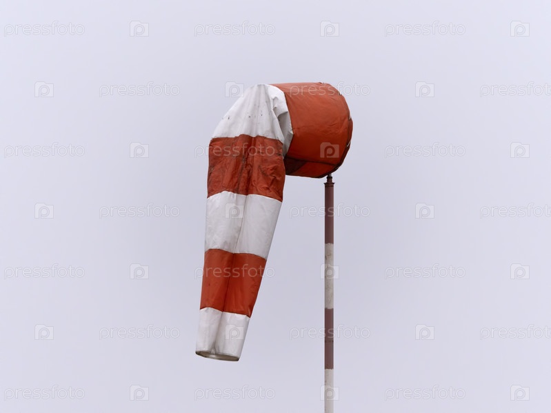 Потертый ветроуказатель при умеренном ветре на фоне голубого неба