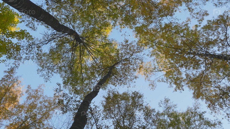 Осенние листья падают в лес, природный ландшафт