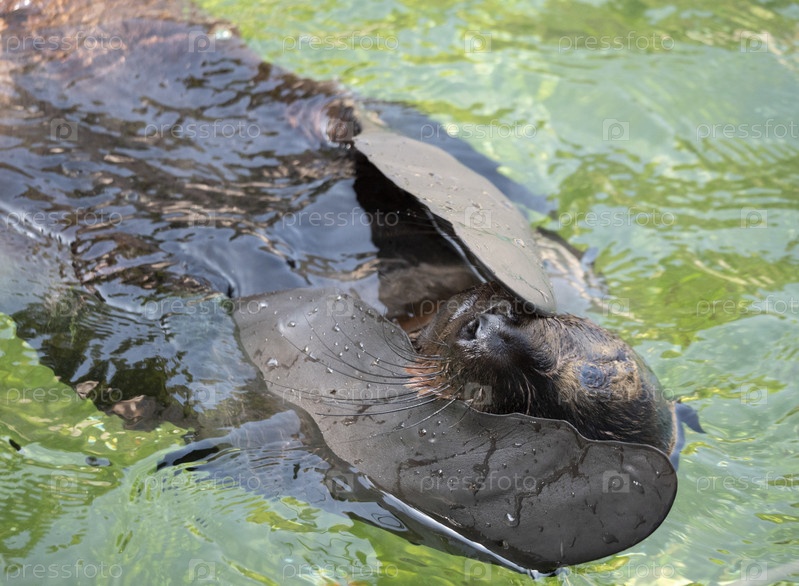 Очень милый пятнистый тюлень всплывает в волнах