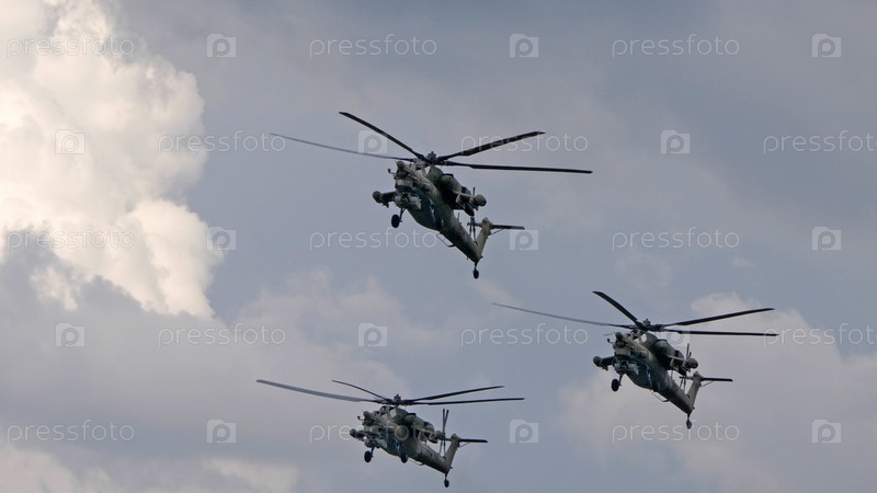 КУБИНКА, РОССИЯ - 15 мая 2021 г.: празднование 30-летия ударных вертолетов Ми-28, пилотажной группы "Стрижи"