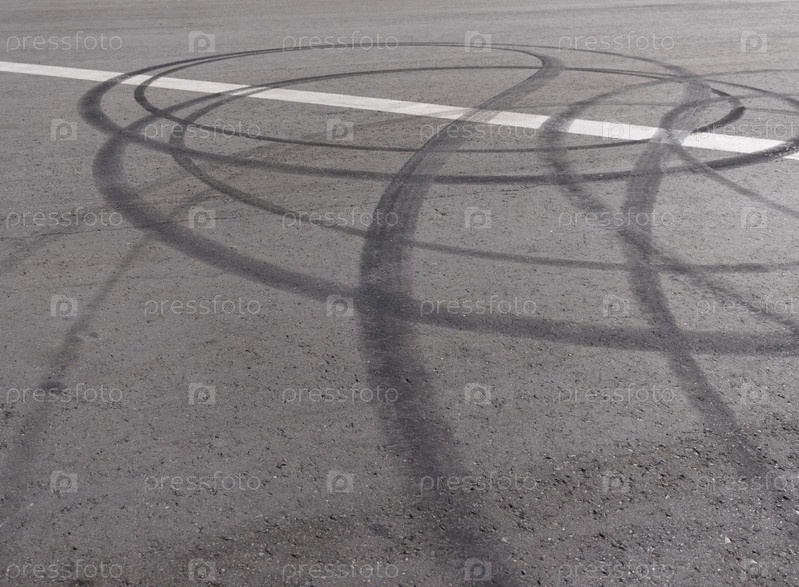 Черный след от резиновых покрышек на асфальте