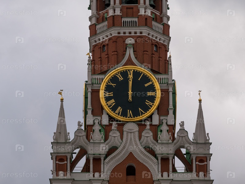 Главные часы Московского Кремля имени Куранти на Спасской башне 12 часов. Красная площадь