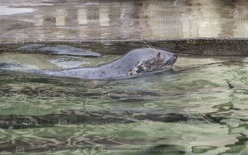 Очень милый пятнистый тюлень всплывает в волнах
