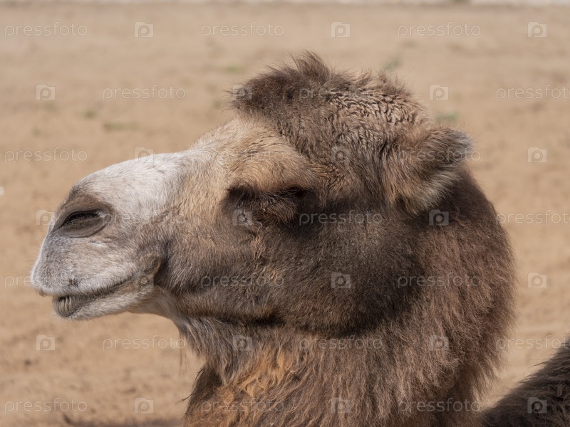 Портрет грациозного двугорбого верблюда, отдыхающего в тени