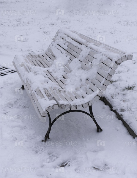 Белая деревянная скамейка в парке на ул