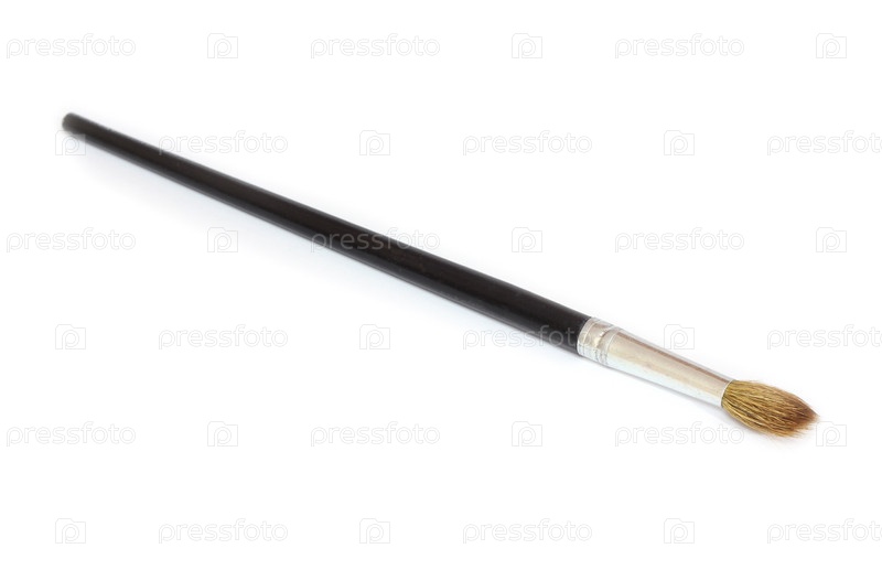Художественная кисть с черной ручкой на белом фоне