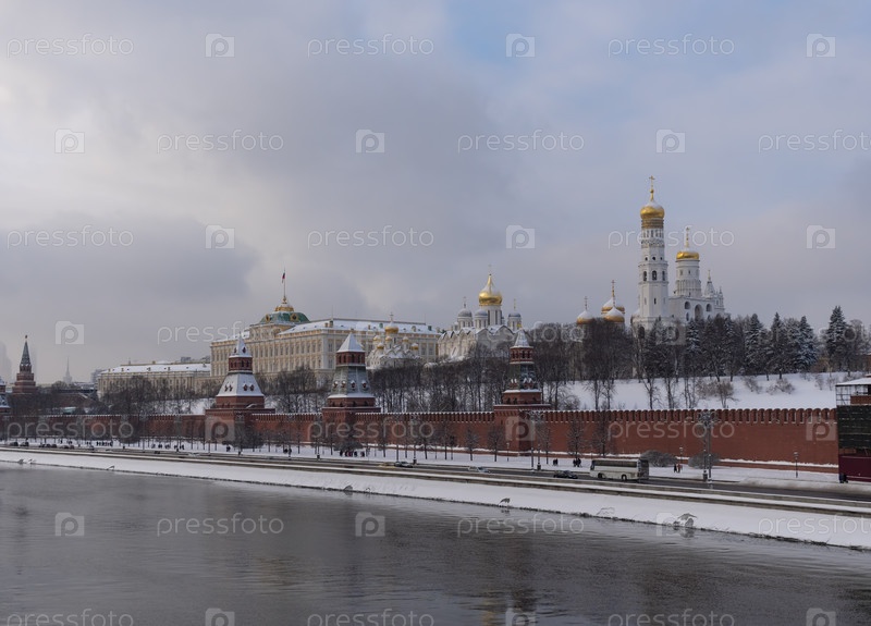 Москва Российская Федерация. Московский Кремль в движении вдоль стены