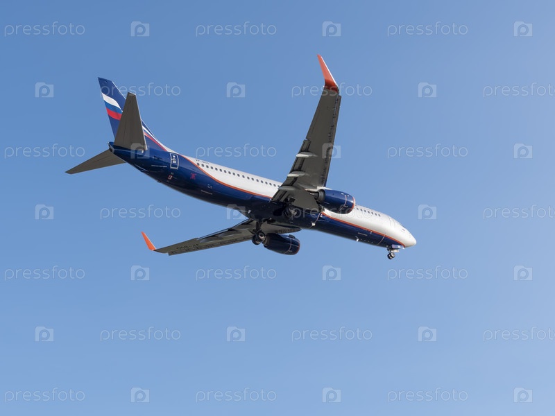 МОСКВА, РОССИЯ, 10 июня 2019 г.: Коммерческий пассажирский самолет пролетел над головой в солнечный день 10 июня 2019 г. в Москве, Россия