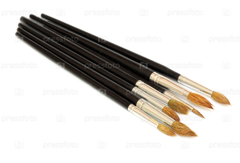 Художественная кисть с черной ручкой на белом фоне