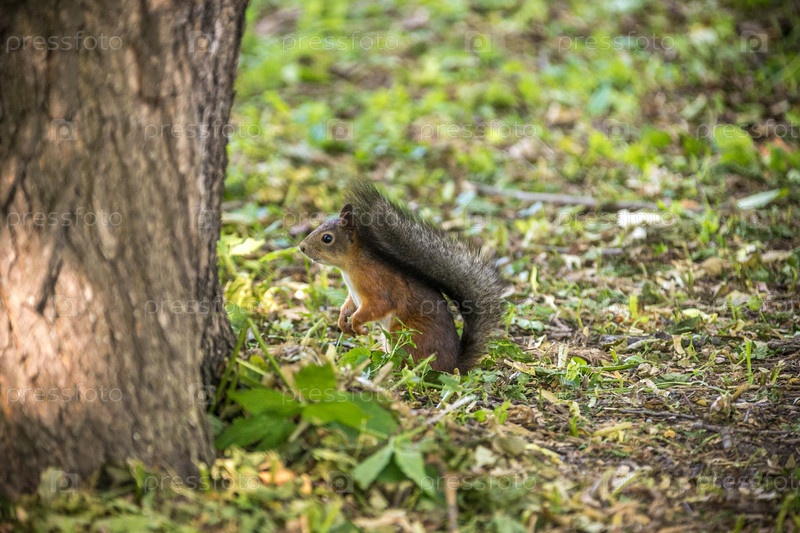 Белка в парке на Елагином острове в Санкт-Петербурге летом