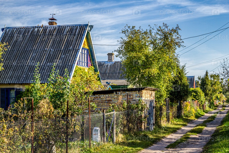 Загородные дачные дома в теплый летний день