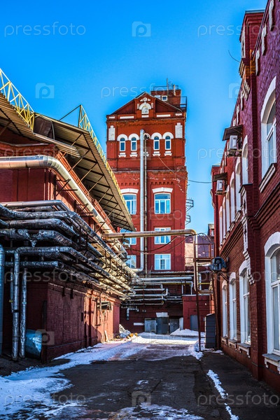 Промышленные здания старого завода из красного кирпича в Москве, Россия
