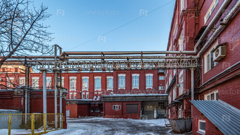 Промышленные здания старого завода из красного кирпича в Москве, Россия