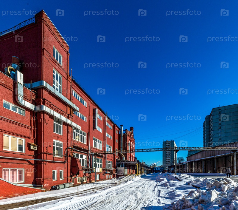 Промышленные здания старого завода из красного кирпича в Москве, Россия