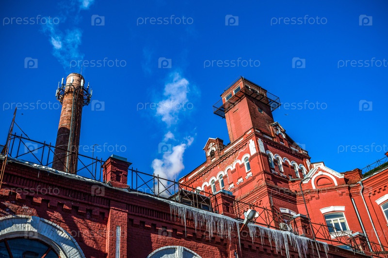 Промышленные здания старого завода из красного кирпича в Москве, Россия