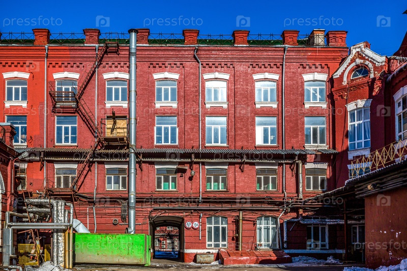 Промышленные здания старого завода из красного кирпича в Москве, Россия