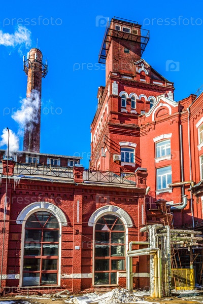 Промышленные здания старого завода из красного кирпича в Москве, Россия